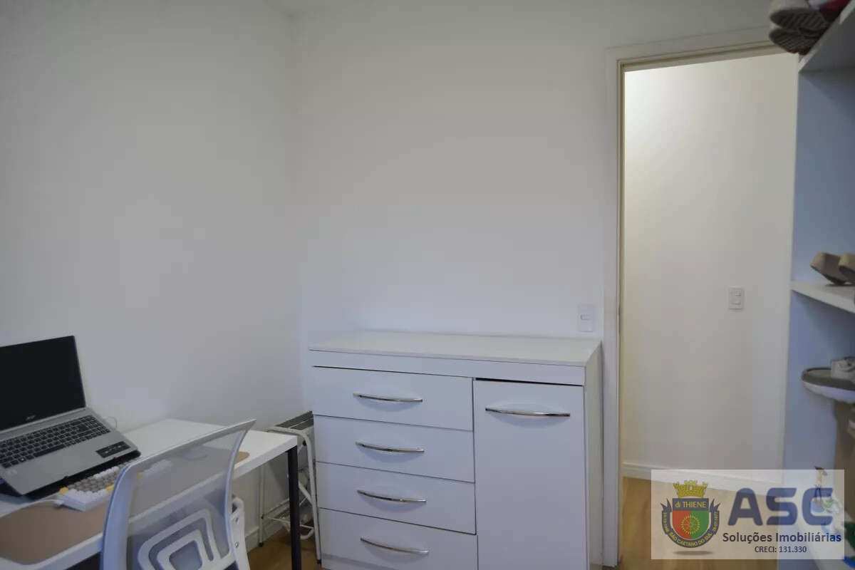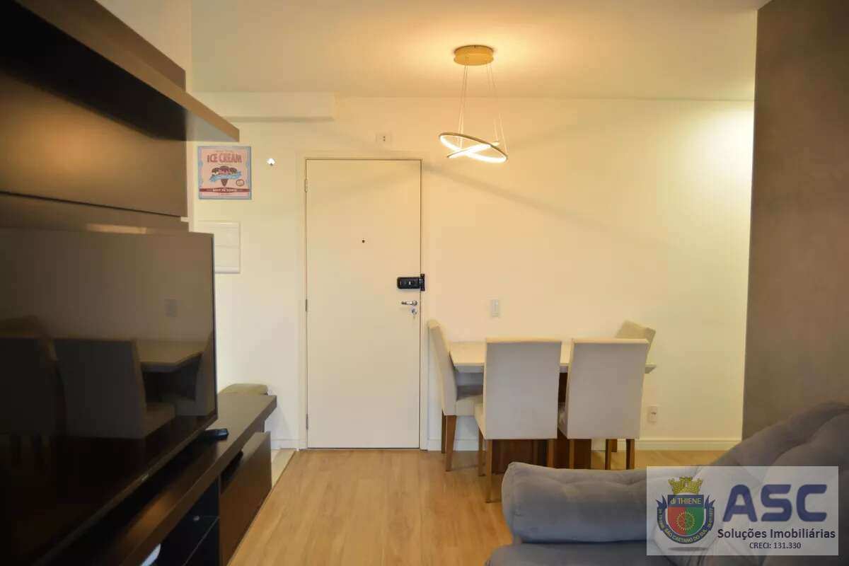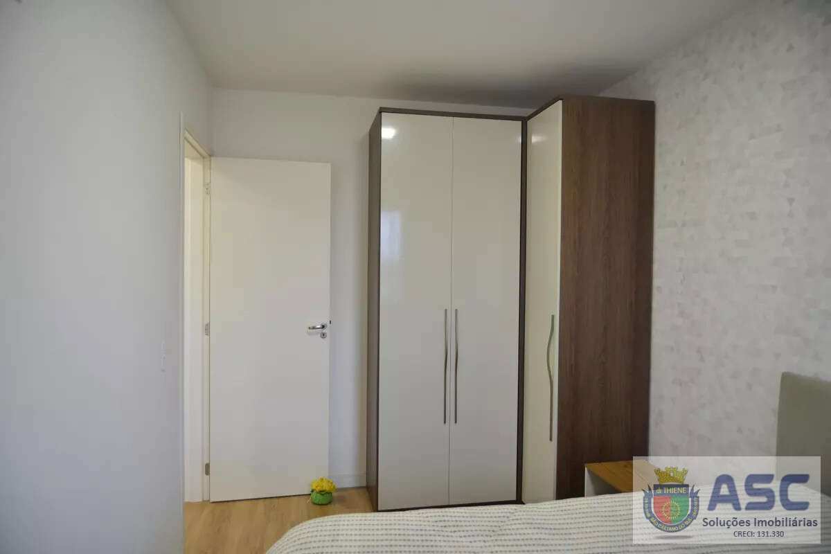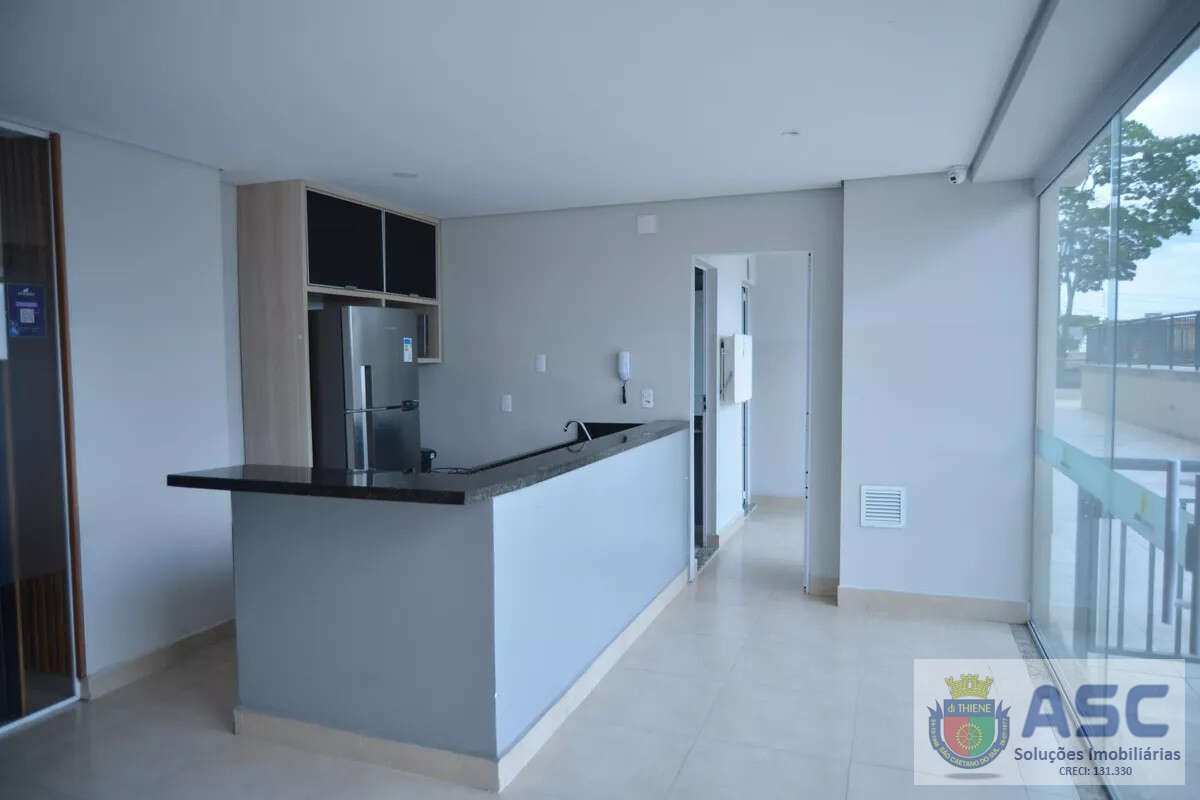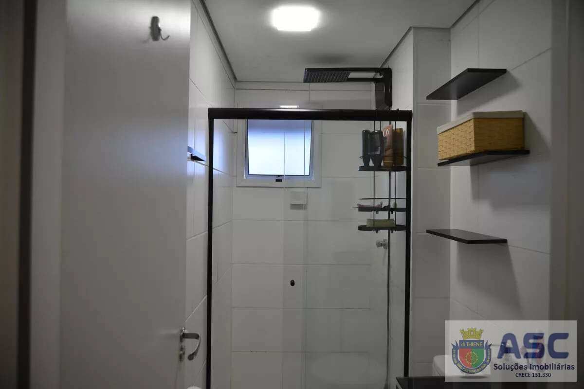 Apartamento com 54m² privativos, dois dormitórios, terraço, cozinha americana, fechadura digital, banheiro social com janela e uma vaga de garagem.