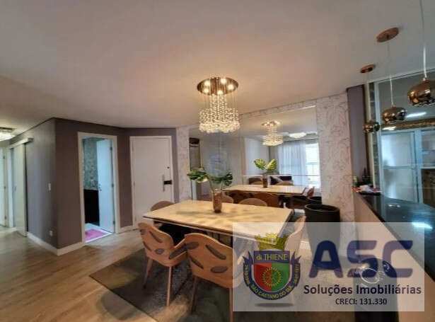Apartamento com 107m² privativos, três dormitórios sendo uma suíte ( terraço privativo na suíte), lavabo, terraço gourmet com fechamento em vidro e churrasqueira, infra para ar condicionado, despensa ou banheiro de serviço e duas vagas de garagem cobertas determinadas.