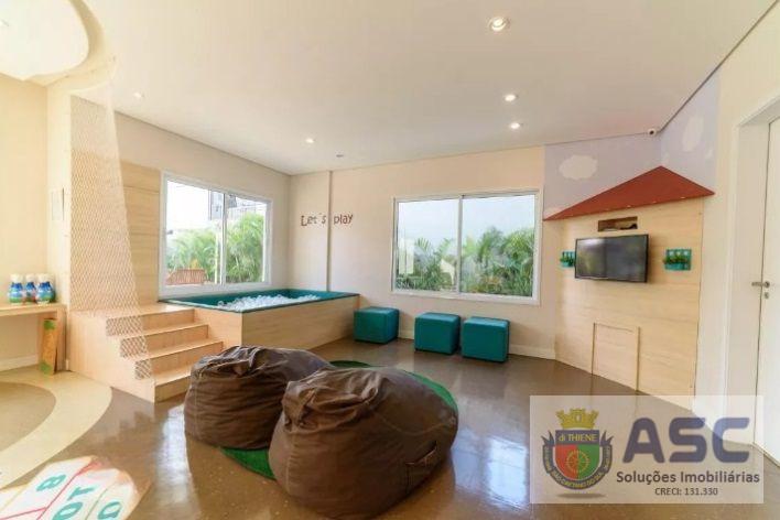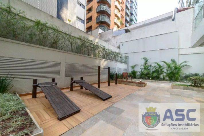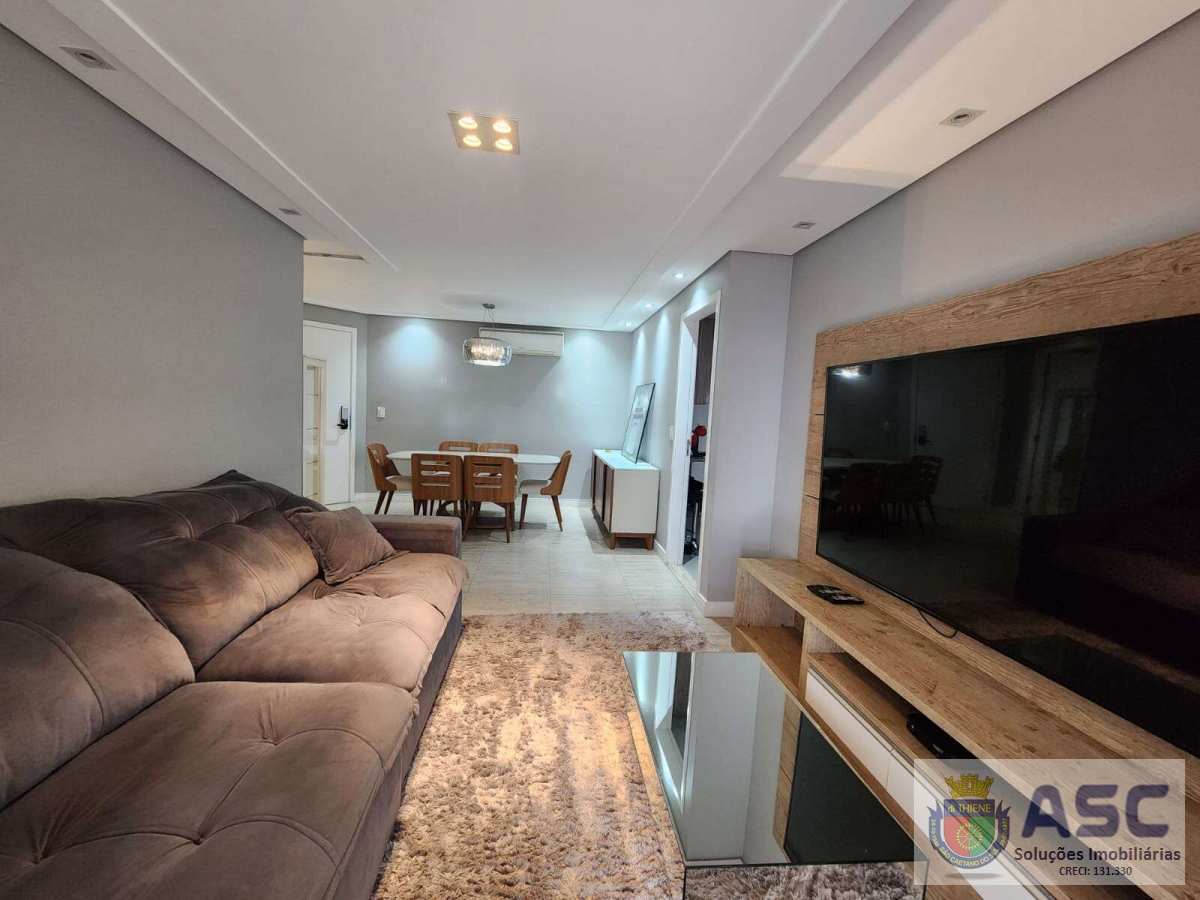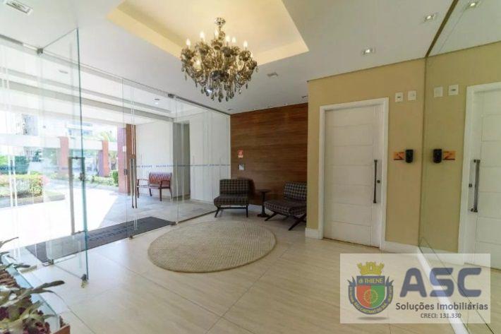 Apartamento com 107m² privativos, três dormitórios sendo uma suíte (terraço privativo na suíte), lavabo, terraço gourmet com fechamento em vidro e churrasqueira, ar condicionado, banheiro de serviço ou despensa e três vagas de garagem cobertas determinadas.