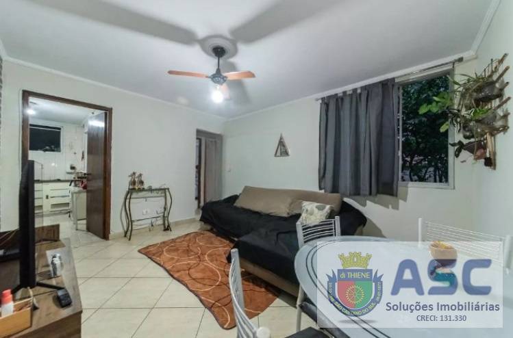 Apartamento com 59m² privativos, dois dormitórios, banheiro social, cozinha com janela, área de serviço individualizada e uma vaga de garagem coberta e determinada.