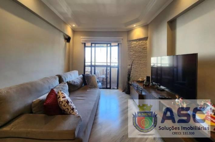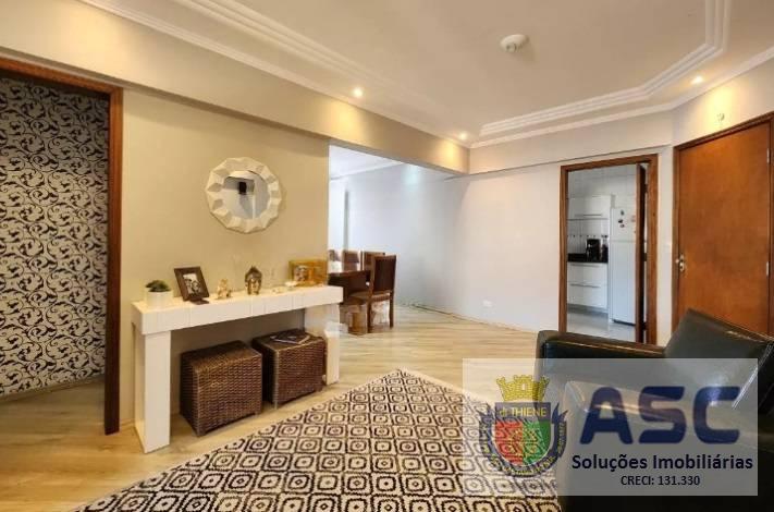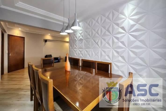 Apartamento com 86m² privativos, planta modificada com dois dormitórios sendo uma suíte com possibilidade de converter em três dormitórios sendo uma suíte, sala ampla com três ambientes, ar condicionado, terraço com fechamento em vidro e duas vagas de garagem determinadas cobertas.