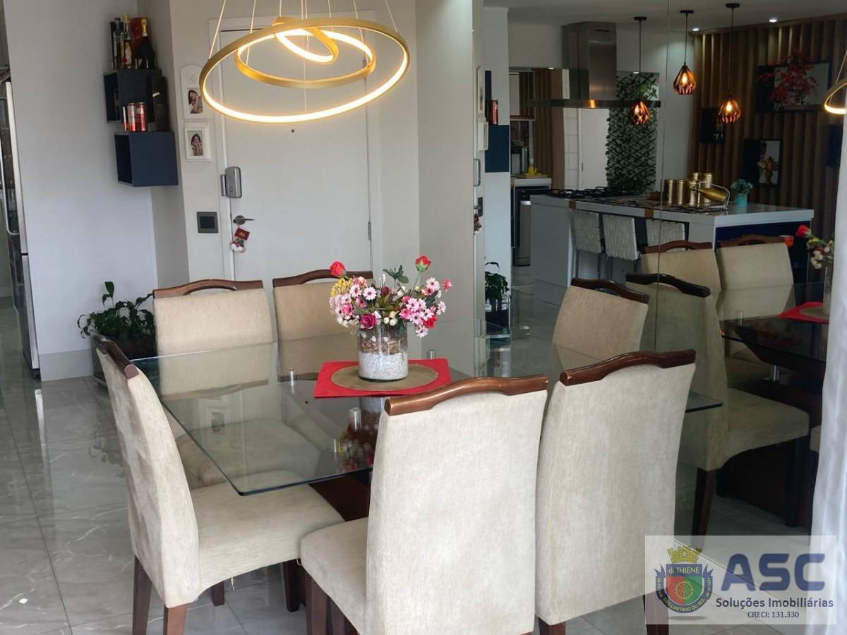 Apartamento com 96m², sala ampliada com dois dormitórios sendo uma suíte (podendo reverter para três dormitórios), terraço nivelado a sala com fechamento em vidro, cozinha americana com ilha, área de serviço individualizada com despensa ou banheiro de serviço e duas vaga sde garagem.