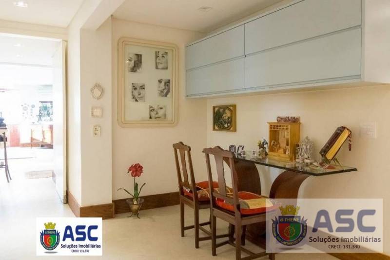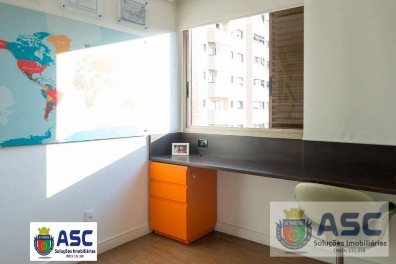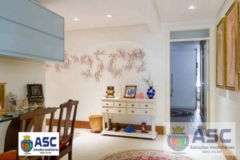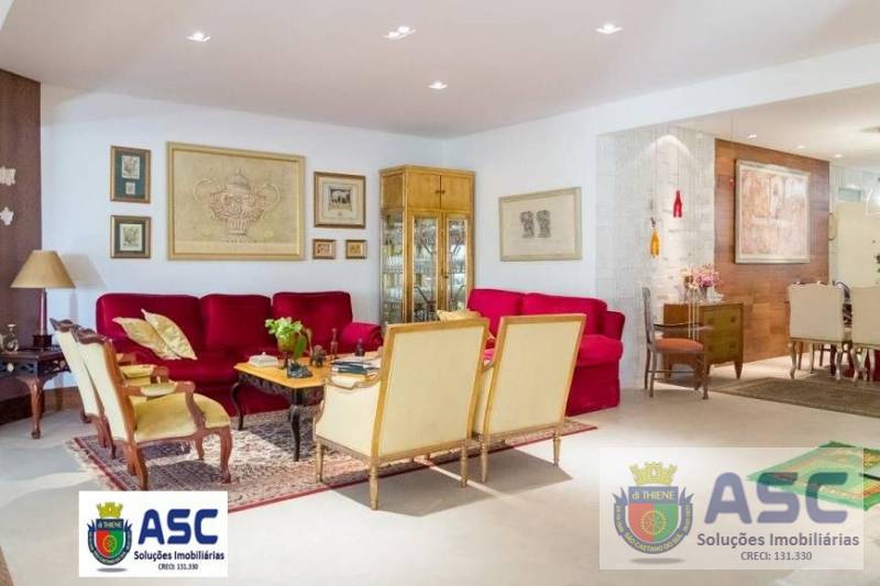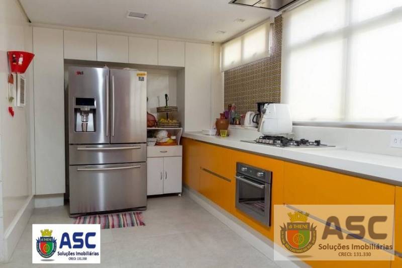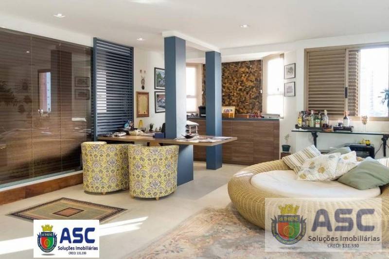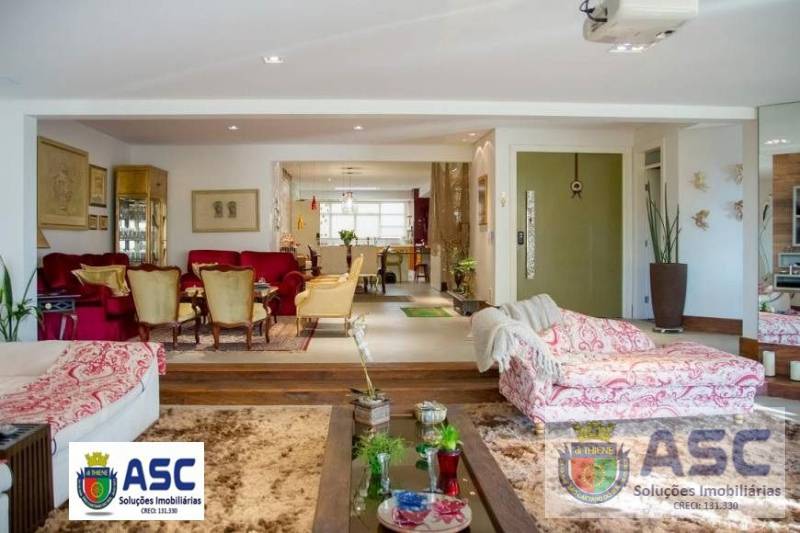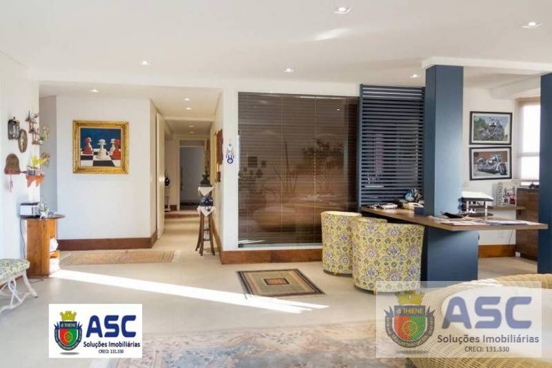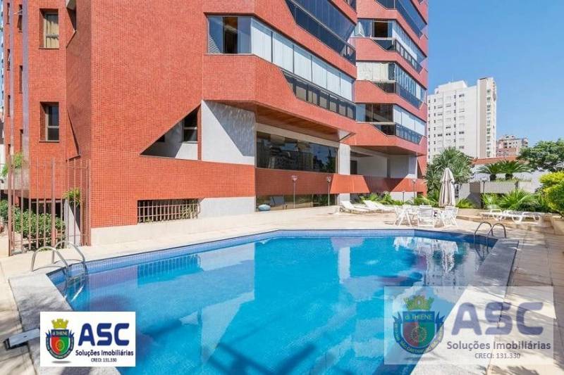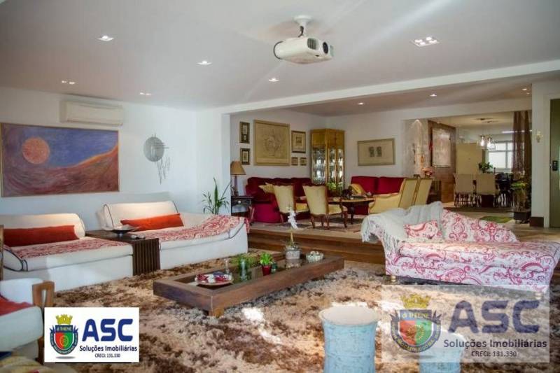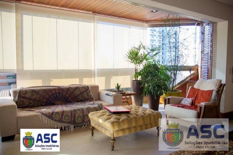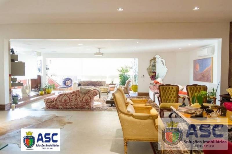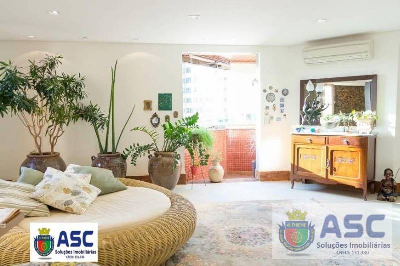 Apartamento com 325m², sala integrada ao terraço, três suítes (possibilidade de criar quatro suítes), hall social com elevador privativo, ar condicionado, lavabo, banheiro social, ampla cozinha com coifa e churrasqueira, área de serviço individualizada com despensa e quatro vagas de garagem determinadas cobertas.