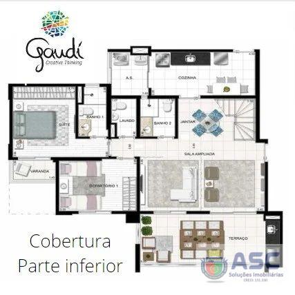 Cobertura duplex com 198m² privativos e infra para ar condicionado.