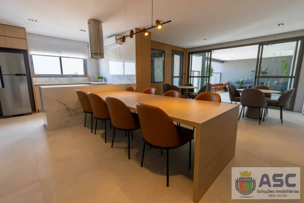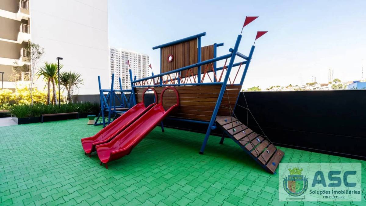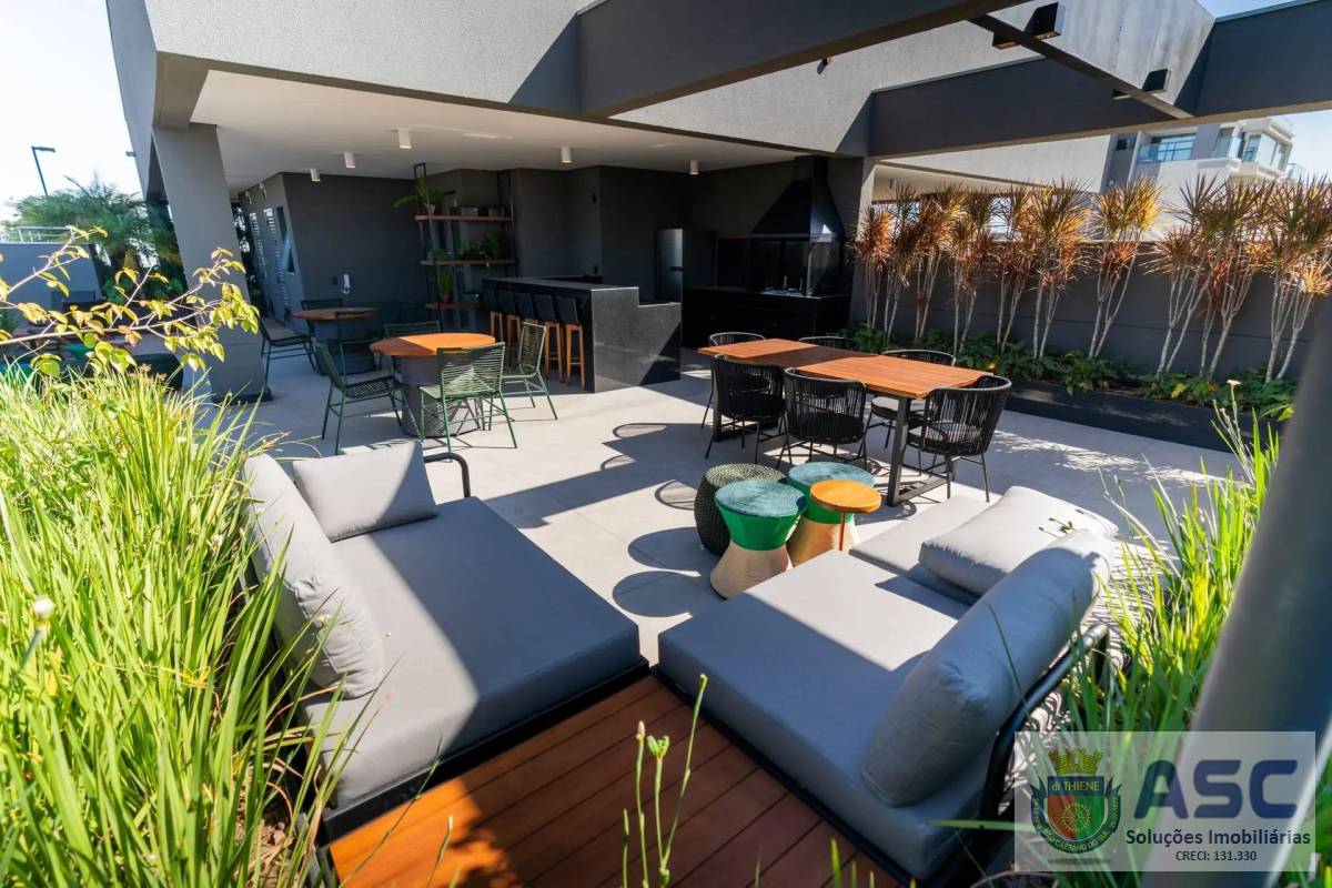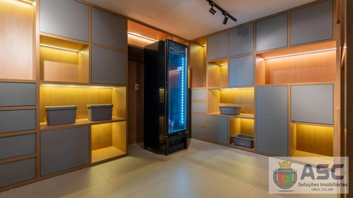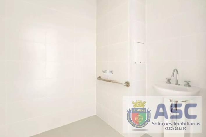 Studio com 20m², banheiro social, persiana de enrolar blackout e misturador de água quente nas torneiras.